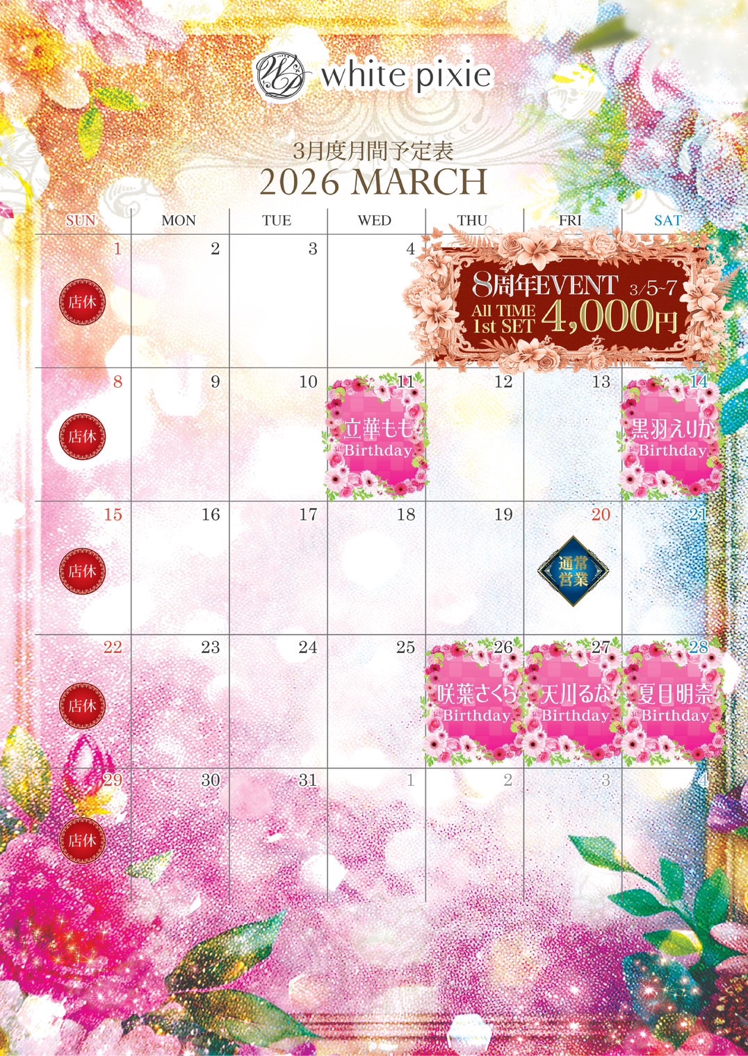 今月ホワイトピクシー8周年になります!